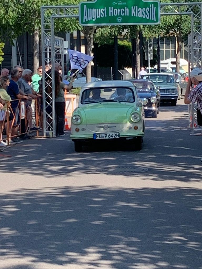Insgesamt vier InterTrab-Teams nahmen am Sonntag, dem 20.07.2025 an der 13. Auflage der August Horch Klassik teil: Ralf Gottmann und Peter Lorenz im Trabant P50, Christian Frankenberger und Christine Radke in einer Trabant 601 Limousine, Klaus-Dietmar und Petra Hessel in ihrem Adler Trumpf Junior und Uwe Menzel und Sylke Menzel-Hartmann in ihrem Porsche 911 Targa.